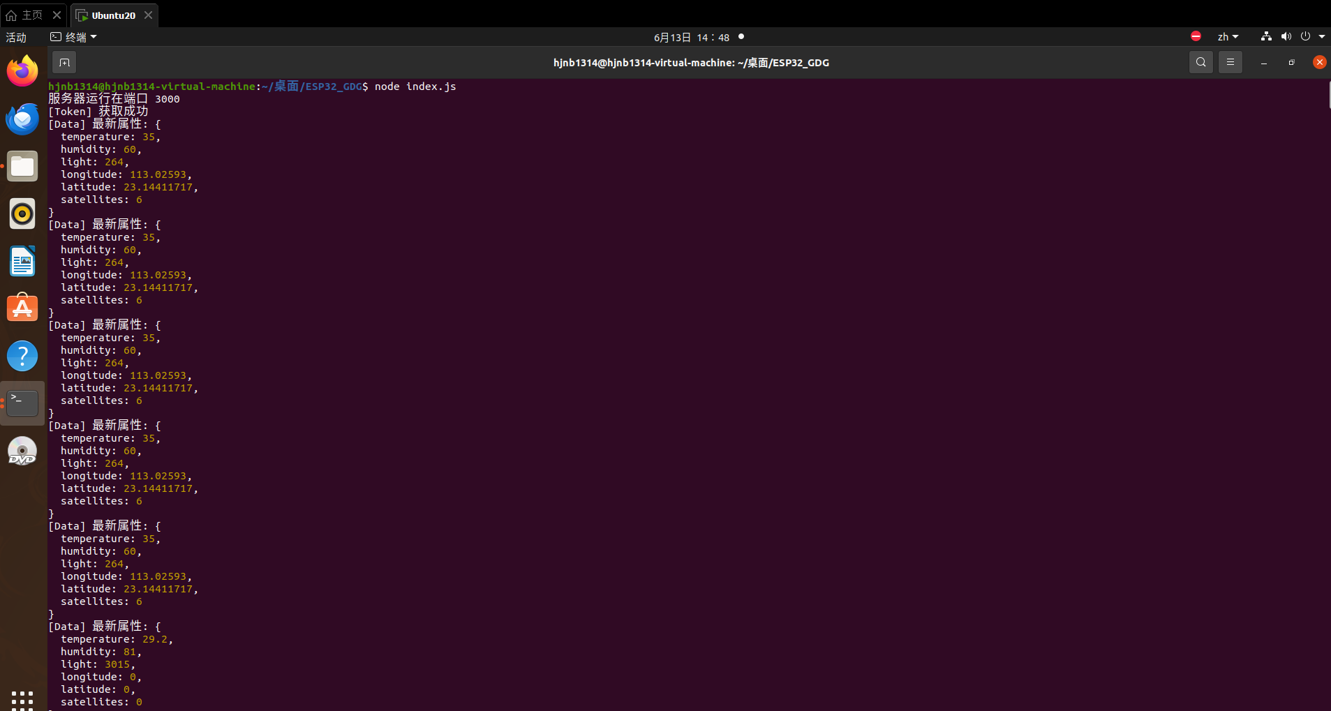 - 定时读取DHT11温湿度、光敏电阻ADC值、GPS数据