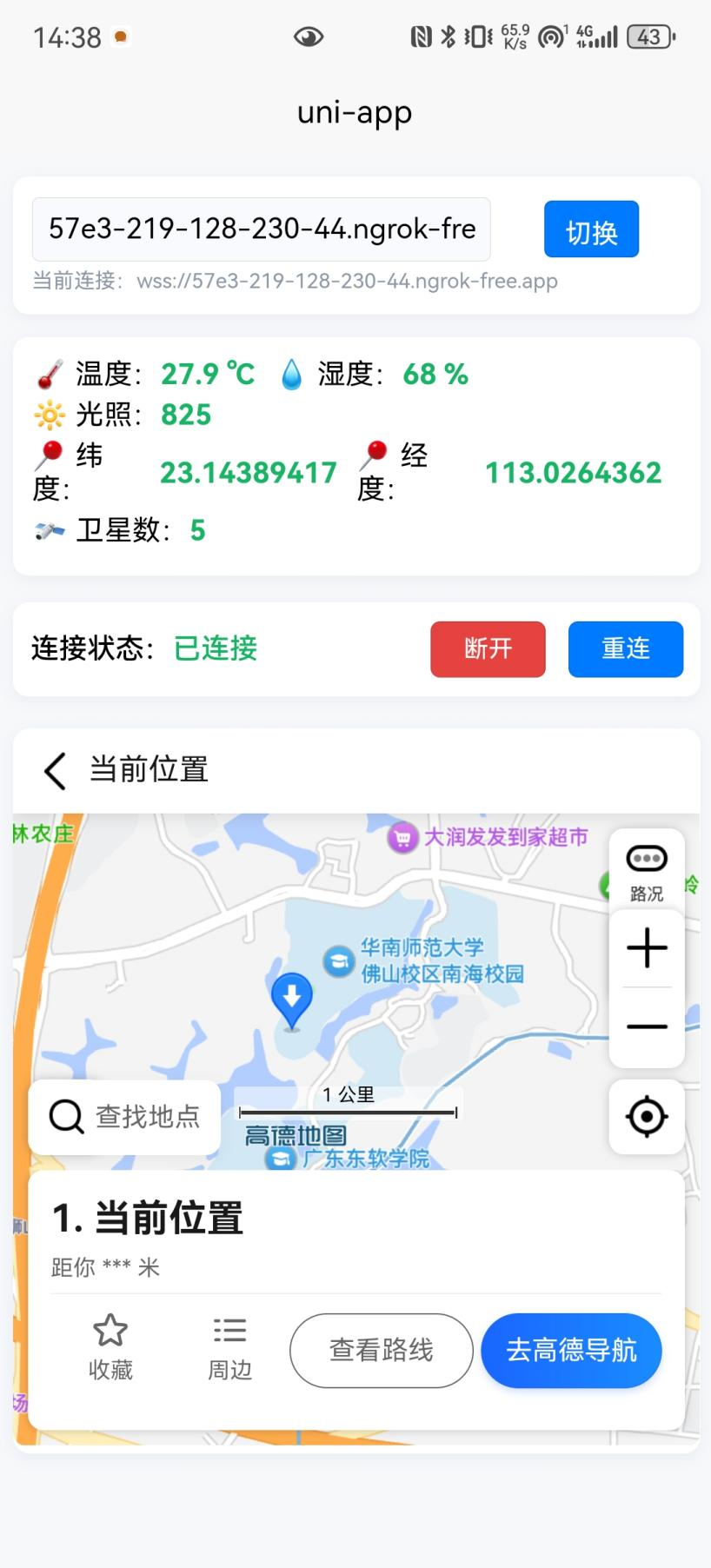 - 展示数据项:温度、湿度、光照、经纬度、卫星数