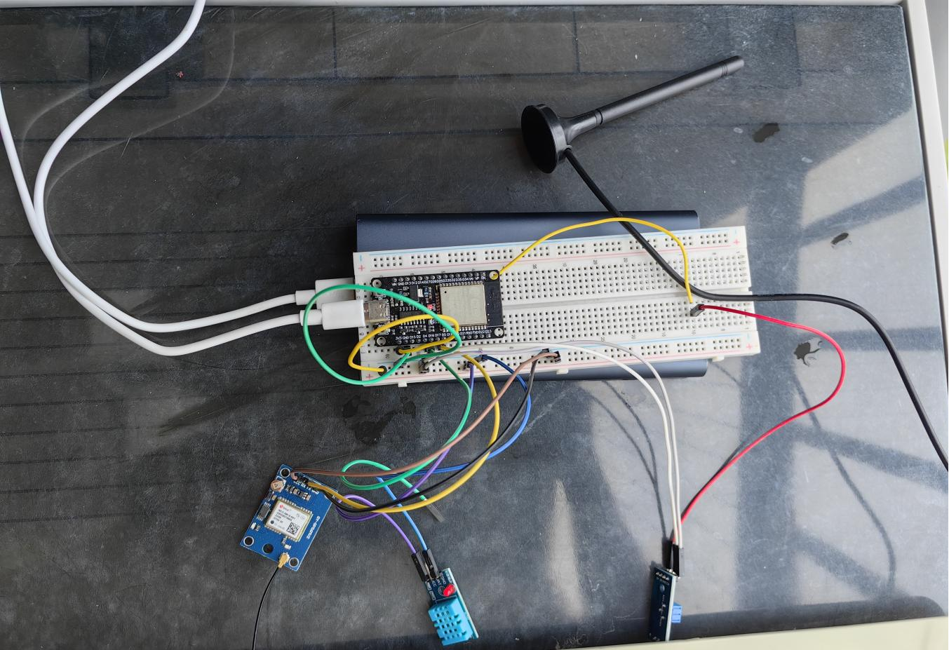- GPS模块TX → ESP32 GPIO17(作为RX2接收,波特率38400)